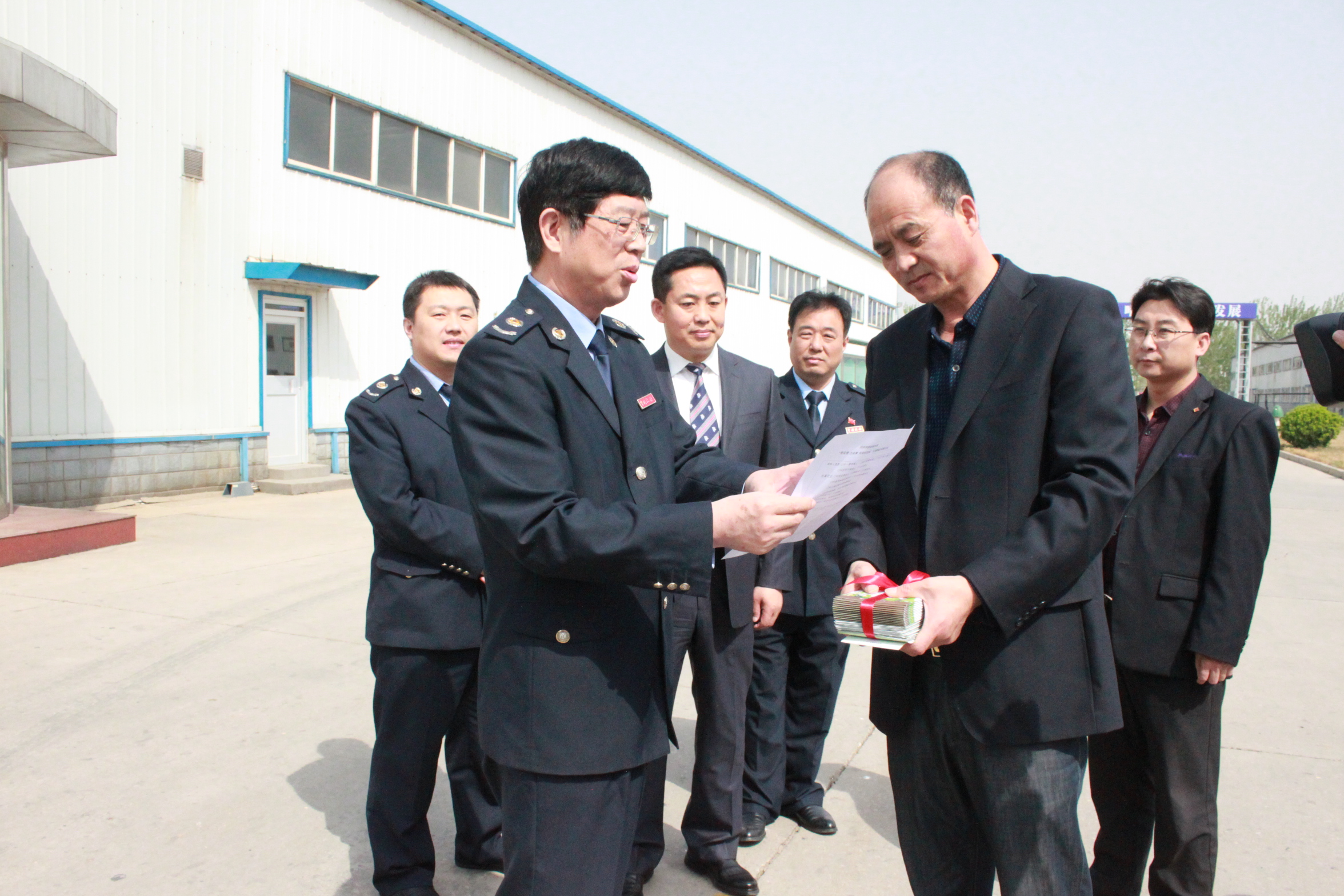圖為公司常務副總接收稅務局領導送來的服務卡